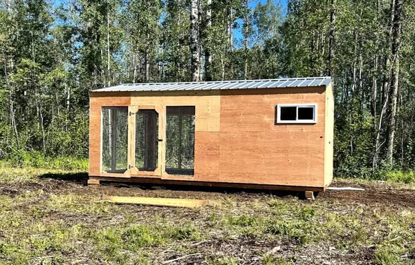 A 12' x 12' insulated pumphouse recently completed and picked up from our location near Fort Macleod, Alberta.